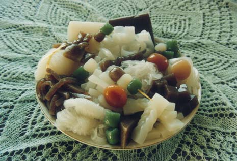 Konjac foods can be made in many different styles and shapes, thread, ball, patch, hollow, konjac cakes, konjac noodles, konjac slices, konjac chips, konjac tufo. Konjac vegetarians foods series include vegetarian shrimps, stomach slices, kidneys, dried beef, squid, cuttlefish, sea cucumber, shell fish, sleeve fish, waist flower and abdomen pieces.