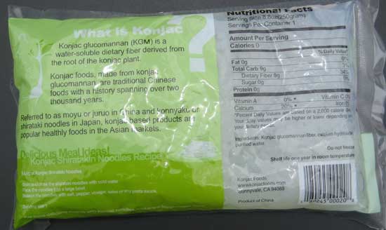 noodles or konnyaku. Konjac foods, translucent and gelatinous, have no discernable