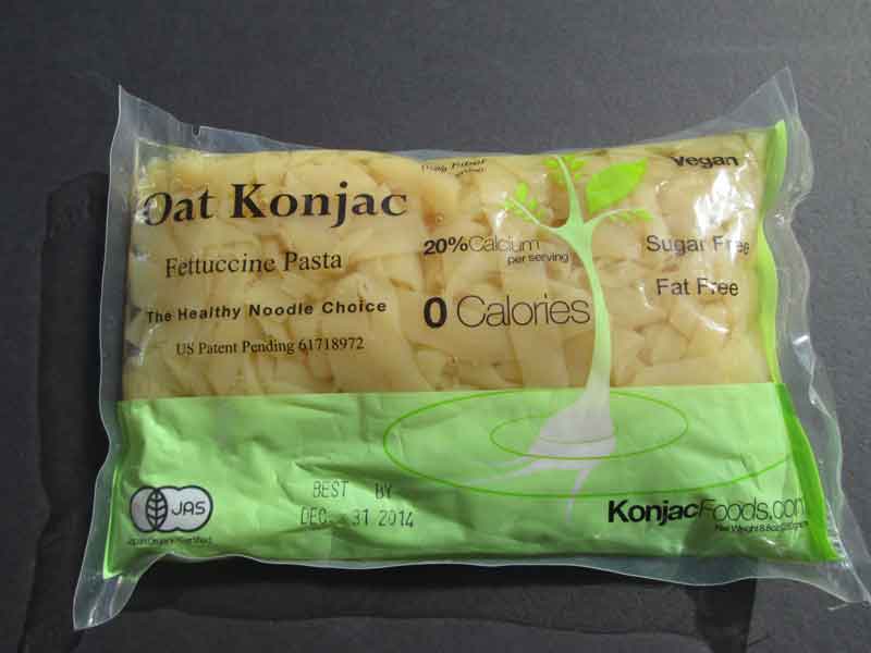 Konjac Oat Noodles, is a patent pending new product from Konjac Foods. Konjac oat noodles have zero calories, and are made with Konjac fiber and oat fiber. Konjac fiber also contains glucomannan, which is a water soluble dietary fiber. The oat fiber ingredient is made in the USA , it is mainly a water insoluble dietary fiber. Konjac oat noodles come in a wet form and are pre-packaged in water.