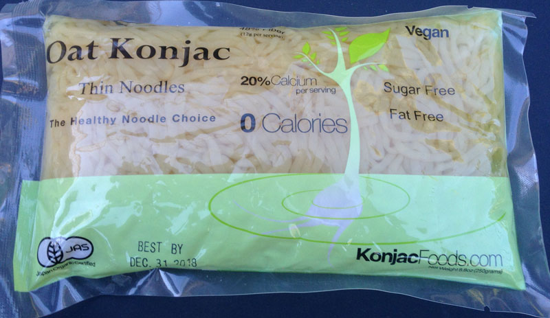When compared to the traditional Konjac Shirataki noodles, Konjac oat pasta looks more like regular noodles with a light brown color (due to the oat fiber), it can easily absorb flavors, and has a less rubbery texture. It's a USA patent pending new food by Konjac Foods.