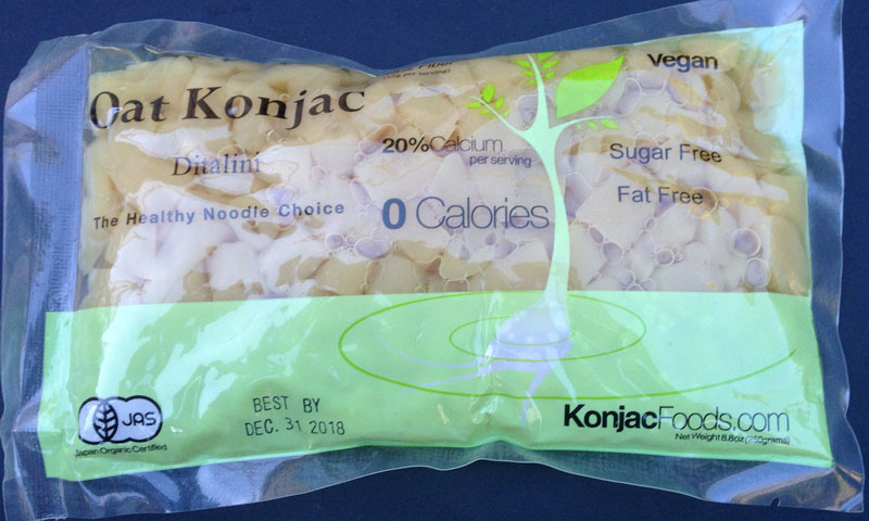 When compared to the traditional Konjac Shirataki noodles, Konjac oat pasta looks more like regular noodles with a light brown color (due to the oat fiber), it can easily absorb flavors, and has a less rubbery texture. It's a USA patent pending new food by Konjac Foods.